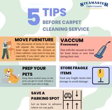 Make a list of stains: There are a few stubborn stains that have been a concern, from the spot from flying forkful of spaghetti to any unfortunate pet accidents, you should let us know where ae they so we can spend extra attention.